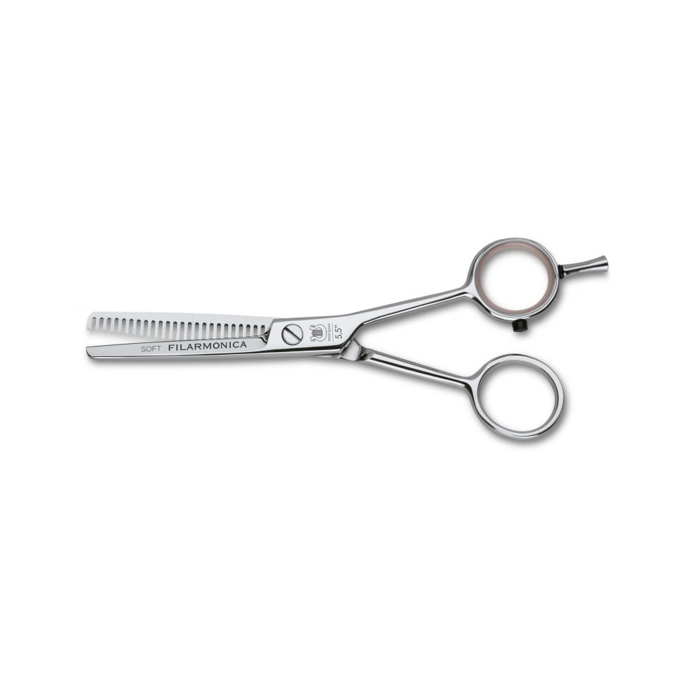 Ciseaux de coiffure sculpteur Soft Filarmonica de 5.5", avec un tranchant plat et une grande dureté.