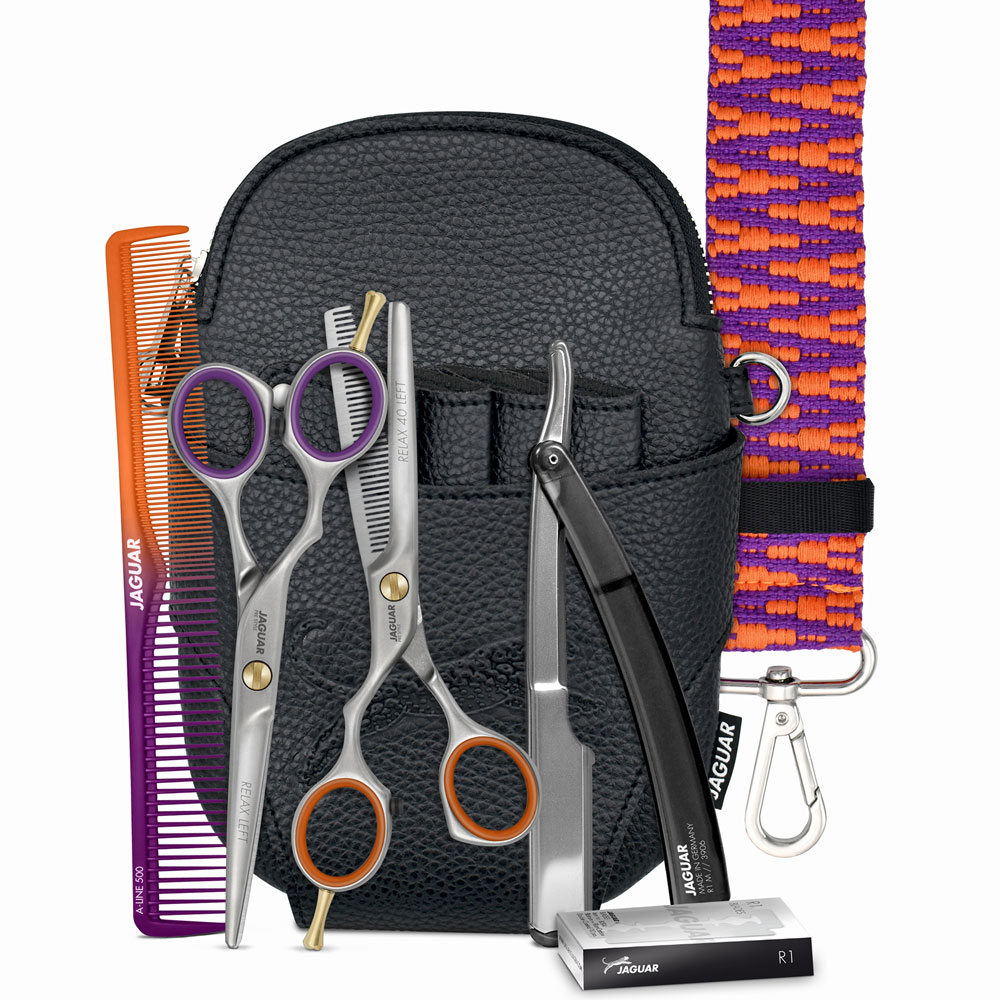 Ciseaux de coupe professionnels de la gamme JAGUAR PRE STYLE en acier spécial pour un très bon tranchant durable. Disponibles au choix en trois variantes de branches. Tous les kits comprennent : Ciseaux de coupe et ciseaux sculpteurs