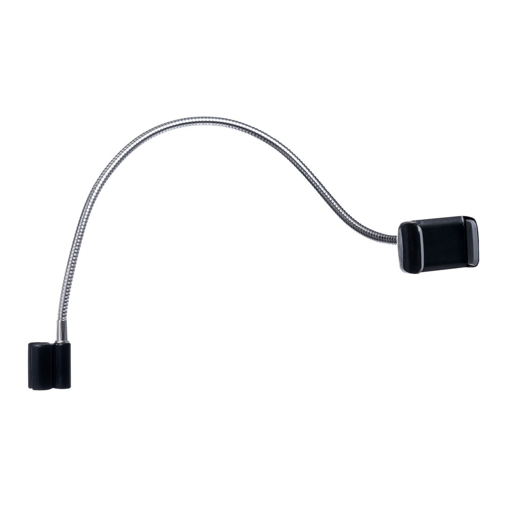 <ul><li>Se fixe rapidement et facilement sur la lampe</li><li>Bras flexible en métal durable (45 cm / 175") permettant de le tordre et de le faire pivoter dans différentes positions</li><li>Maintient un téléphone portable avec précision sans perdre sa position</li><li>Mâchoire intégrée pour un montage et un retrait rapides – maintient en toute sécurité des téléphones de différentes tailles (ouverture de la mâchoire jusqu’à 9 cm / 35")</li></ul>