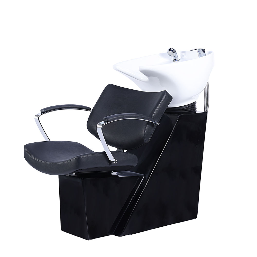 Cette unité de lavage est conçue pour s'harmoniser parfaitement avec le fauteuil de style Kate, mais elle constitue également une option élégante en soi. La base noire mate est fabriquée en fibre de verre, à la fois solide et légère, et la profonde vasque en céramique s'incline pour assurer le confort optique. Comprend un mitigeur et une douchette. Poids: 42,5kg