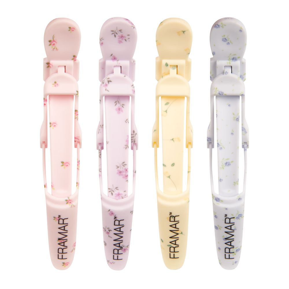 <ul><li>Adoptez le style printanier avec la collection Charme champêtre, où pastels doux et fleurs délicates s'épanouissent derrière votre fauteuil. Inspirée par le charme chaleureux d'une maison de campagne.</li><li>Séparez les cheveux pour les écarter pendant la coloration, le coiffage et la pose d'une feuille.</li><li>Maintenez sans effort de grandes sections de cheveux grâce à ces pinces à large ouverture et antidérapantes.</li><li>La texture caoutchoutée vous permet de placer le clip une seule fois et de le maintenir en place jusqu'à ce que vous soyez prêt à le retirer.</li></ul>