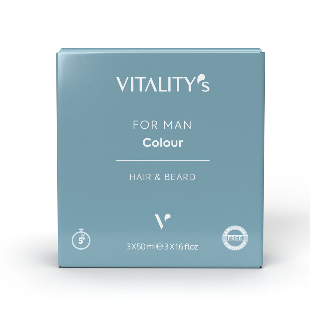 Vitality’s For Man Colour Hair & Beard is een product dat exclusief voor mannen is ontwikkeld. De specifieke formule, ontwikkeld in onze laboratoria, dekt grijs of wit haar op natuurlijke wijze en herstelt de natuurlijke kleur van hoofd- en gezichtshaar, zonder een worteleffect te creëren.